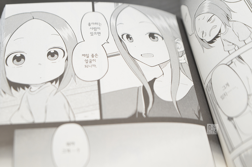 살면서 저렇게 좋은 얼굴을 한 적이 나는 있을까 싶어 곰곰이 생각을 해보았더니… 현실에서 누군가를 만나 저렇게 좋은 얼굴이 된 적은 없었다. 하지만 만화 <장난을 잘 치는 전 타카기 양>을 읽거나 <여친, 빌리겠습니다>를 읽으면서 최애의 모습을 볼 때 딱 그런 얼굴이 되었던 것 같다. 뭐, 오타쿠로서는 이런 모습이 당연한 게 아닐까? (웃음)