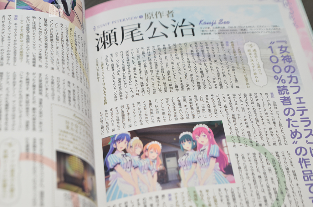 자세한 건 직접 애니메이션 <여신의 카페테라스 공식 비주얼 북>을 구매해서 원작자의 인터뷰를 읽어보도록 하자. 다소 내용이 길어서 읽는 데에 시간이 걸릴 수도 있지만, 일본어를 공부하고 있는 사람이라면 시간을 들여서 읽어볼 만한 매력과 재미를 갖추고 있다고 생각한다. 나는 이런 글을 읽기 위해서 그동안 일본어 공부를 해왔던 거다. (웃음)