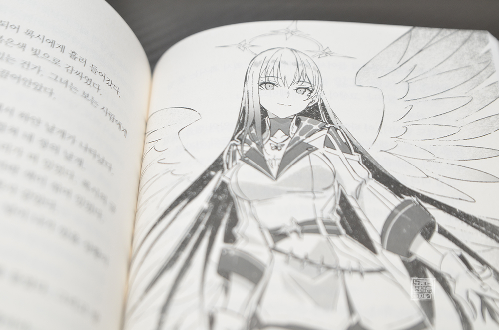 라이트 노벨 <폭식의 베르세르크 7권>에서 새로운 모습을 보여준 건 대죄스킬 분노를 해방한 마인만이 아니다. 바로, 위 사진에서 볼 수 있는 록시 또한 새로운 힘을 손에 넣는 것과 동시에 새로운 모습을 보여주게 된다. 마치 <블리치 천년 혈전 편>에서 볼 수 있는 퀸시의 해방 모드 같다고 할 수 있고, 보이는 그대로 천사 같다고 할 수도 있다.