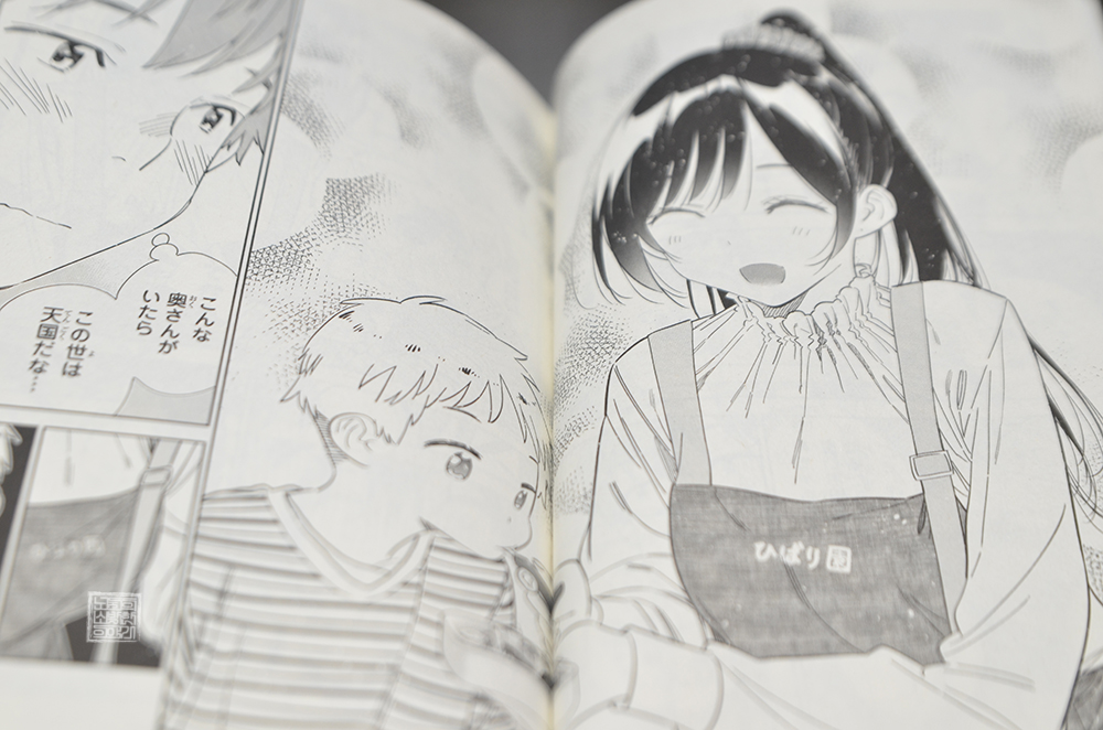 카즈야는 치즈루가 아이들을 돌보면서 미소 짓는 모습을 보면서 '이런 부인이 있으면 이 세상은 천국이겠지―.'라며 혼자 미소를 짓기도 한다. 만화 <여친 빌리겠습니다 34권>을 읽으면서 나도 그렇게 생각했는데, 치즈루가 아이들을 돌보면서 보여주는 모습은 그녀가 가진 상냥함이 한층 더 부각되었다 보니 저절로 미소가 지어졌다.