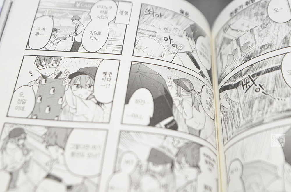 개인적으로 만화 <학생회에도 구멍은 있다 4권>에서 가장 재밌었던 건 토라무라와 얽힌 해프닝이었고, 달리 재밌었던 건 우메와 미치노쿠 두 사람이 비 오는 날에 함께 동물원을 찾은 편이다. 비 오는 날에도 동물원이 운영한다는 사실도 놀라웠지만, 궂은 날씨에도 아랑곳하지 않고 동물원을 즐기는 미치노쿠의 모습이 귀여웠다.