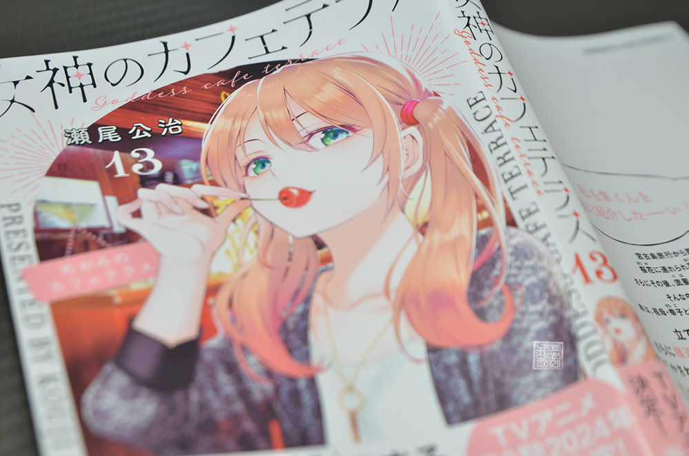 지난 12월을 맞아 일본에서는 만화 <여신의 카페테라스 13권>이 정식 발매되었다. 한국에서도 대원씨아이가 공식 X 채널과 만화 <히트맨>을 통해 만화 <여신의 카페테라스 1권>의 정식 발매를 예고했는데, 아쉽게도 오는 2024년 1월까지 1권의 발매 소식은 들을 수가 없었다. 만화가 한국에 정식 번역 발매되는 건 2월쯤이 되지 않을까?