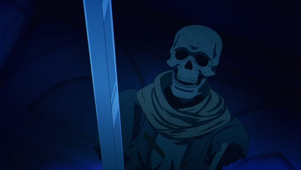 그 결과 렌트는 마침내 평범한 스켈레톤에서 근육이 붙은 구울로 진화하는 데에 성공한다. 하지만 구울이 되었다고 해서 겉은 여전히 섞은 시체였기 때문에 모험가 렌트로서 마을에 돌아가는 일은 쉽지 않았다. 애니메이션 <원치 않는 불사의 모험가 1화>는 렌트가 구울로 진화한 모습과 함께 몇 가지 복선을 던지면서 막을 내리게 되었다.