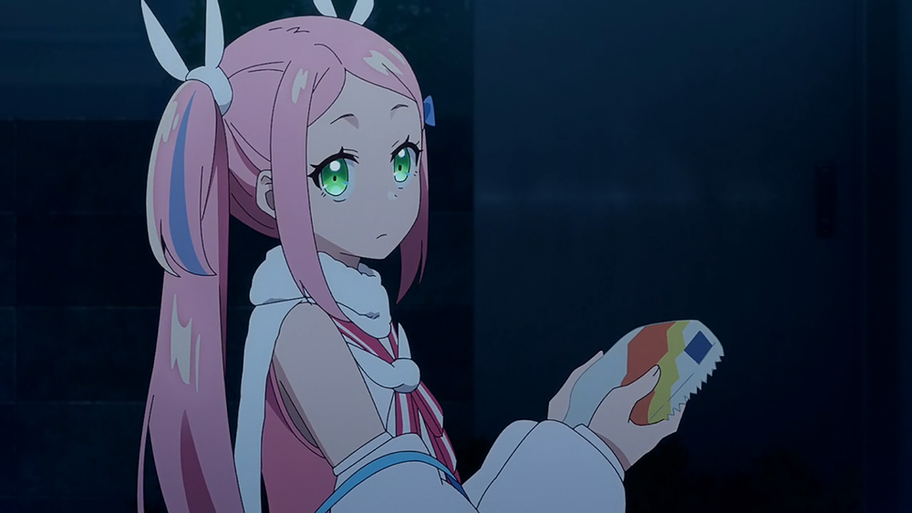 그리고 애니메이션 <사사키와 피짱 2화>는 마지막에 새로운 인물을 등장시키면서 끝을 맺었다. 그 인물은 위에서 첨부한 사진에서 볼 수 있는 분홍색 머리에 트윈테일을 한 소녀로, 아주 천진난만하게 멜론빵을 훔쳐서 먹은 이후 다른 차원으로 사라지는 모습은 사사키와 독자를 당황하게 했다. 과연 그녀의 정체는 무엇일까? 저, 신경 쓰여요!
