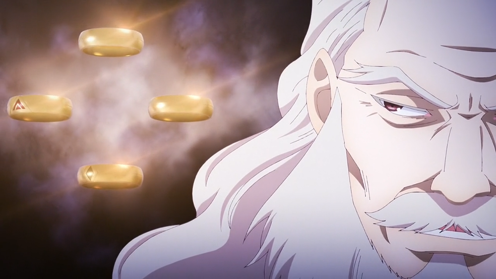 영화 <반지의 제왕>에서 볼 수 있는 절대 반지를 쫓는 망자가 되어버린 기사 같은 놈들에게 습격을 받는 장면으로 애니메이션 <결혼반지 이야기 2화>는 막을 올린다. 사토는 반지의 힘을 통해 마물을 쓰러뜨리는 데에는 크게 고전하지 않았지만, 아직 그가 가진 힘은 심연의 왕 수하를 상대하기 위해서는 역부족이었다.