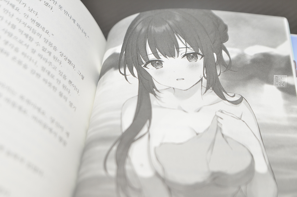 개인적으로는 1권을 읽었을 때도 그랬지만, 2권에서도 마히루의 모습이 살짝 독보적이었다고 생각한다. 첨부한 흑백 일러스트를 통해 볼 수 있듯이 그녀가 무심코 유우를 끌어안고 잔 것도 벌써 두 번째이고, 어릴 때부터 지금까지 한결 같이 건방지고 쾌활한 마히루의 태도는 유우에게 있어서도 거리감이 어려운 인물이었다.