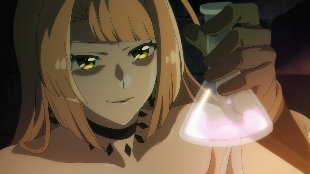 애니메이션 <원치 않는 불사의 모험가 5화>는 로렌느의 연구 대상으로 지정된 렌트가 평범한 사람이라면 죽음에 이를 수도 있는 독을 먹는 것으로 막을 올린다. 렌트의 몸은 스켈레톤에서 구울, 그리고 시귀로 존재 진화를 한 덕분에 평범한 사람의 몸과 다르다 보니, 독을 먹었을 때도 그저 맛이 없다고 느낄 뿐 몸에 이상은 없었다.