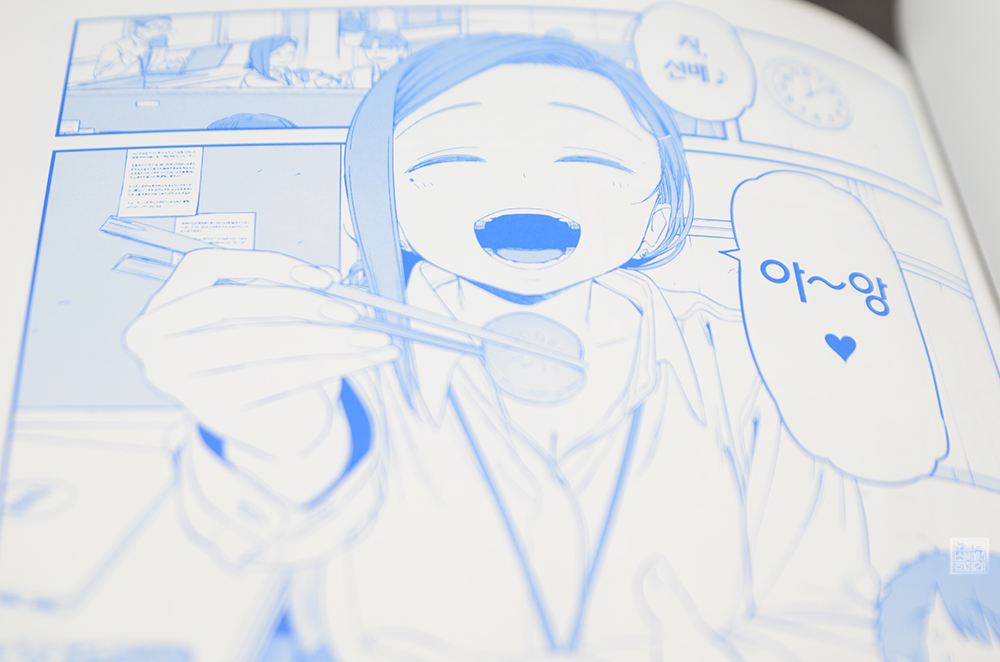 물론, 만화 <월요일의 타와와 4권>은 앞머리 짱만 아니라 지난 3권에서 오른팔을 다친 선배를 보살피는 후배 짱의 모습도 재미있게 볼 수 있다. 후배 짱이 오른팔을 못 쓰는 주인공을 위해서 생활적인 부분을 돕는 모습도 재밌었고, 회사에서 선배의 손톱을 깎고 다듬어 주는 모습을 통해서 커플 분위기를 뿜뿜 뿜기는 모습이 보기 좋았다.