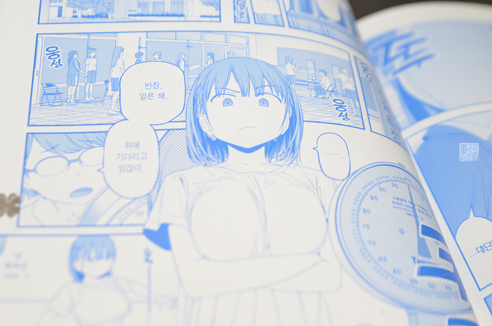 그리고 아이가 체중계에 올라가서 몸무게를 재는 모습과 몸무게가 덜 나오기 위해서 취한 수단도 신박했다. 지난 만화 <월요일의 타와와 3권>에서 아이가 마라톤을 무사히 완주할 수 있었던 작전과 똑같이 배구부 친구의 도움을 받는데, 당연히 그렇게 측정된 몸무게는 각하를 당하면서 아이 짱은 키 149cm에 몸무게 50kg이 기록된다.