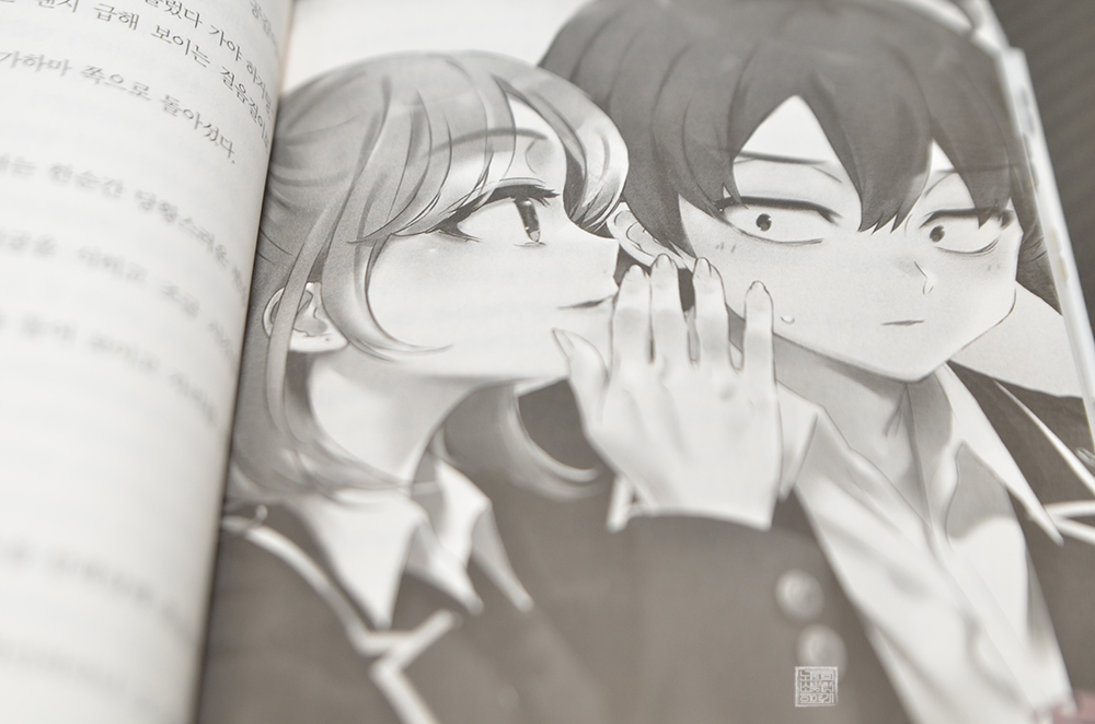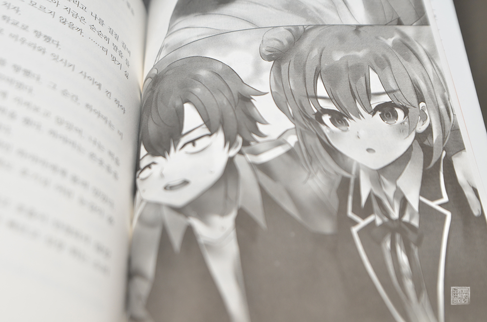 조금 더 자세한 건 직접 라이트 노벨 <역시 내 청춘 러브 코메디는 잘못됐다 결 2권>을 읽어볼 수 있도록 하자. 본편에서도 그림체는 조금씩 바뀌고 있었지만, <역시 내 청춘 러브 코메디는 잘못됐다 결 2권>에서 볼 수 있는 컬러 일러스트와 흑백 일러스트는 분위기가 정말 달랐다. 아마 이 일러스트에도 사람들의 호불호가 꽤 있지 않을까?