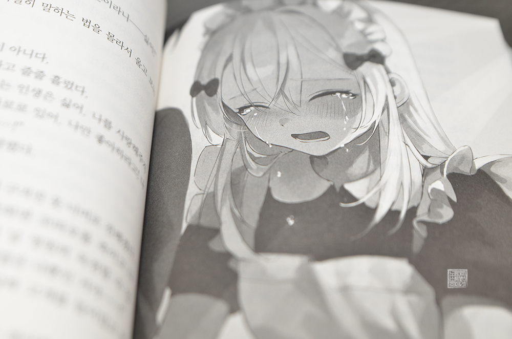 덕분에 <시모츠키는 엑스트라를 좋아한다 3권>의 표지에서 볼 수 있는 귀여운 시모츠키의 모습을 볼 수 있었지만, '메이드 카페'라는 이름을 지닌 이 장소는 이번 3권에서 절대 가볍게 간과할 수 없는 의미를 가진 장소였다. 메이드 카페는 나카야마이의 이모 이치죠 치리가 점장으로 있는 곳만이 아니라 그 메리가 숨어서 스토리를 보는 장소였다.