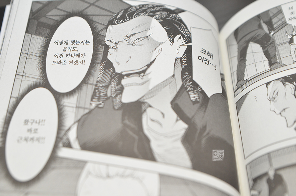 <다윈즈 게임 7권>은 류쉐란과 슈카 두 사람의 정면 대결로 막을 올리고 있는데, D게임 랭킹 1위를 자랑하는 류쉐란이 보여주는 강함은 슈카를 압도할 정도로 대단했다. 물론, 슈카도 무술 실력이 뛰어난 인물이기 때문에 류쉐란의 공세에 밀리지 않는 모습을 보여주었다. 이 두 사람의 대결은 보는 것만으로도 7권은 무척 흥미로웠다.