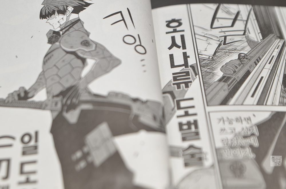 역시 일본도를 사용하는 캐릭터의 오기는 바로 도(刀) 한 자루를 이용해 눈에 보이지 않는 속도로 상대를 베어버리는 기술이라고 생각한다. 이것도 약속된 전개이다 보니 호시나가 눈앞의 괴수를 쓰러뜨리는 데에는 아무런 문제가 없어 보인다. 기대되는 건 <괴수 8호 11권>에서 괴수의 모습으로 변신한 주인공 카프카의 다음 활약이다.