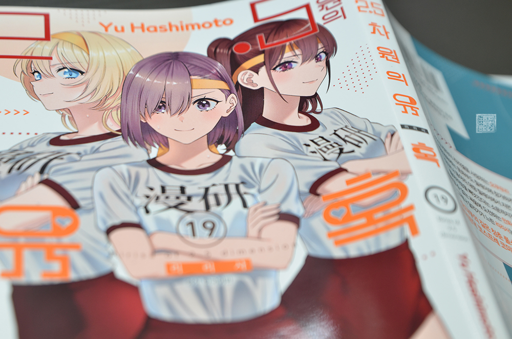 오랜만에 정식 발매된 만화 <2.5차원의 유혹 19권>의 표지를 본다면 학교에서 열리는 체육대회를 맞아서 상당히 각오를 다진 모습을 한 리리사, 미카리, 츠바키 세 사람의 모습을 볼 수 있다. 세 사람 외에 아리아와 노노아의 모습이 그려지지 않은 이유는 함께 코스프레 활동을 한다고 해도 그녀들은 어디까지 타 학교의 사람이기 때문이다.