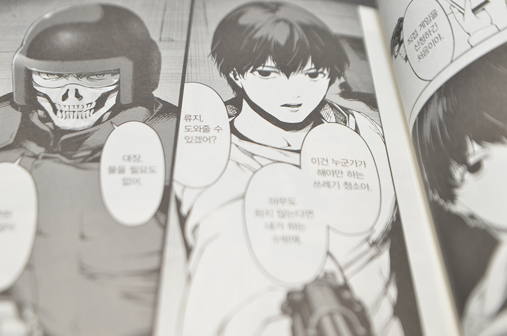 개인적으로 만화 <다윈즈 게임 8권>에서 흥미로웠던 건 그렇게 카나메의 길드 선셋 레이븐즈가 길드 에이스를 소탕한 이후 시부야에 D게임 금지령을 발동한 이후 볼 수 있는 장면들이다. 게임 운영자와 함께 움직이는 듯한 '처형인'이라는 수식어를 가진 인물을 비롯해 목숨을 위협받는 꽃집의 딸 스즈네의 모습이 흥미로웠다.