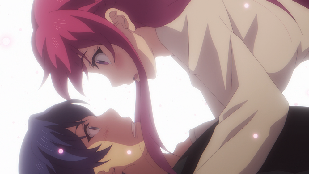 그 예로 애니메이션 <여신의 카페테라스 2기 1화>에서 볼 수 있는 모두의 아찔한 귀여움을 볼 수 있는 모습은 좀처럼 입꼬리가 내려오지 않게 했다. 오카가 킷카에게 지금의 카페테라스 상황을 이야기한 이후 자신의 마음에 대해 고민하다가 하야토와 얽혔을 때 보여주는 모습도 그랬지만, 아카네가 보여준 모습은 파괴력이 엄청났다.
