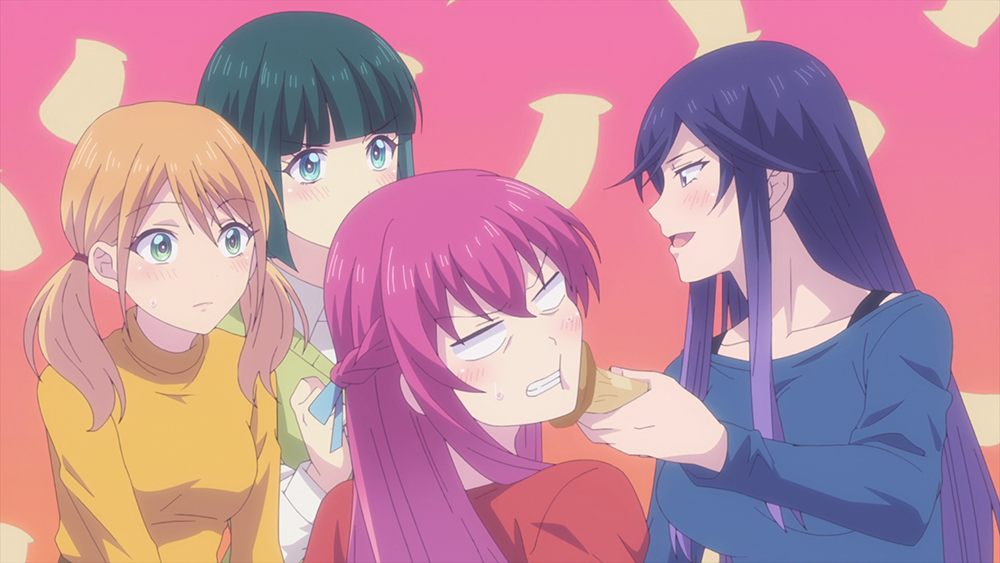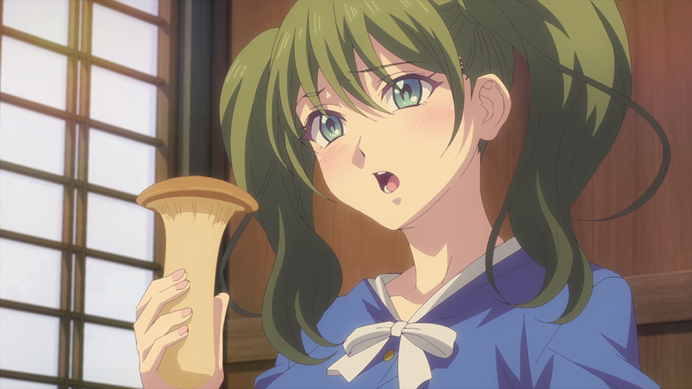 여기서 아미가 하야토의 물건과 크기와 모양이 비슷하다면서 가지고 온 것은 일본어로 'エリンギ'라고 말하는 큰 느타리 새송이버섯으로, 버섯을 들고 여러 히로인이 잡담을 주고받는 모습은 어처구니없으면서도 너무 웃겼다. 지난 <여신의 카페테라스 2기 6화>에서 그려진 아미의 할머니 이야기가 꽤 진지했다 보니 더 웃겼던 것 같다.