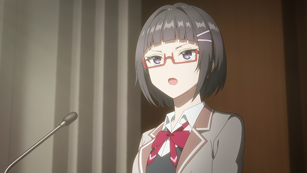 하지만 어릴 적에 자신의 주장이 거절당했던 경험과 사람들 앞에 서는 것에 대한 불안감을 가진 아랴는(도대체 학생 회장 선거는 왜 도전하는 건지) 무대 위에서 학생들의 모습을 보고 경직되고 말았다. 그런 아랴의 긴장을 풀기 위해서 마사치카가 꺼낸 건 "아랴 너 정말 E컵이야?"라는 질문으로, 어떻게 보면 아주 재미있는 질문이었다.