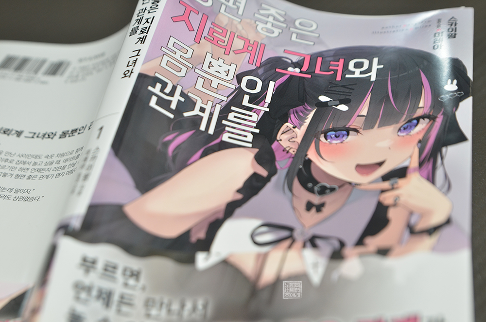 개인적으로 지난 8월을 맞아 소미미디어가 정식 발매한 작품 중에서 제목과 표지 일러스트에 이끌려 구매한 신작 중 하나가 라이트 노벨 <형편 좋은 지뢰계 그녀와 몸뿐인 관계를 1권>이다. 표지에서 볼 수 있는 지뢰계 복장을 한 그녀는 <그 비스크 돌은 사랑을 한다> 키타가와 마린의 친구인 스가야 노와와 닮은 것도 끌린 이유 중 하나다.