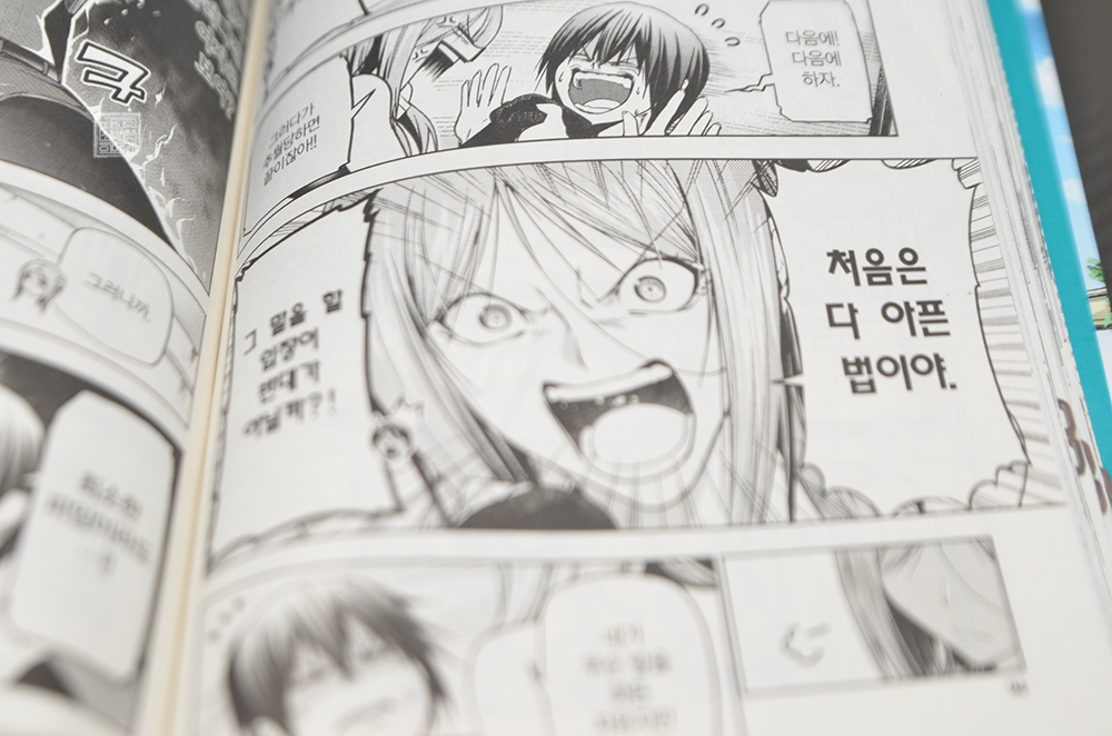 하지만 만화 <그랑블루 22권>에서 가장 재미있게 읽은 건 부스지마 사쿠라코가 등장한 이후다. 사쿠라코는 전날에 웨이크보드를 체험하느라 전신 근육통이 걸려 꼼짝도 하지 못하는 이오리를 덮치고자 했는데, 이 과정에서 볼 수 있는 해프닝은 그냥 연신 웃으면서 볼 수 있었다. 내가 이오리였다면 그냥 해버렸을지도 모른다. (웃음)