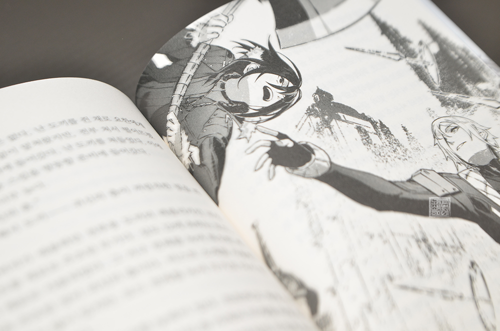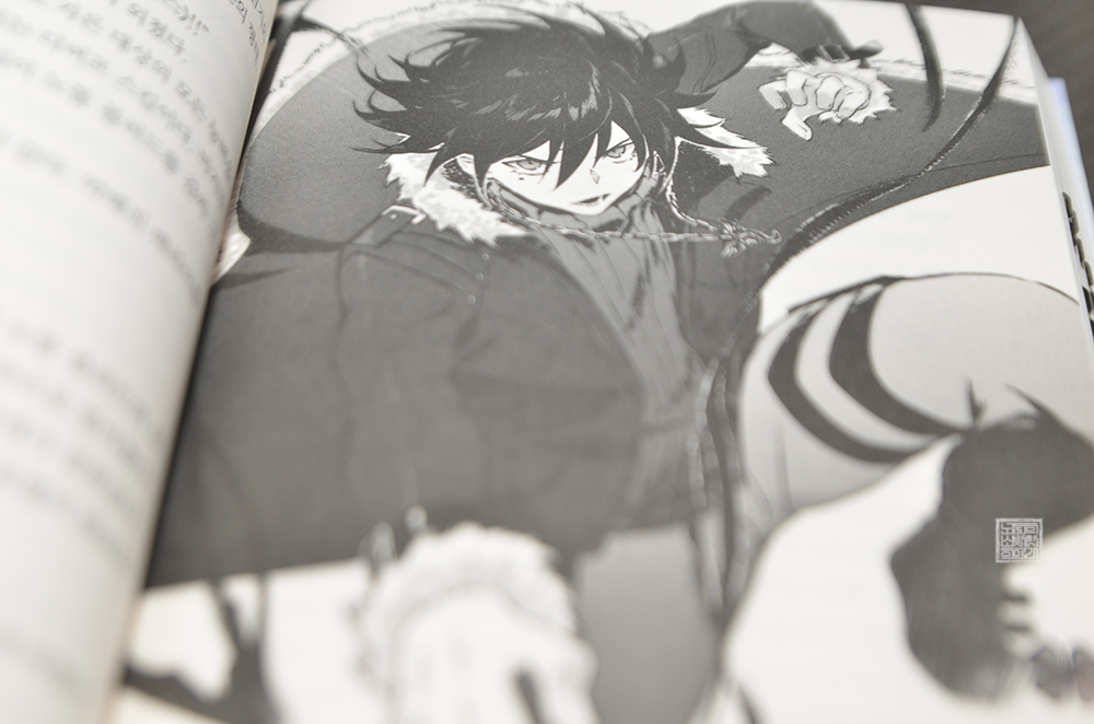 위에서 첨부한 흑백 일러스트를 보면 노엘은 자신의 할아버지가 애용했던 도끼를 활용해 요한과 싸우는 모습을 볼 수 있다. 어쩌다 노엘이 이런 전략을 취하게 되었는지는 직접 라이트 노벨 <최흉의 버퍼 화술사인 나는 세계 최강 클랜을 이끈다 3권>을 읽어보길 바란다. 대단히 피로한 시간이기는 했지만… 대단히 재미있는 시간이 되었다.