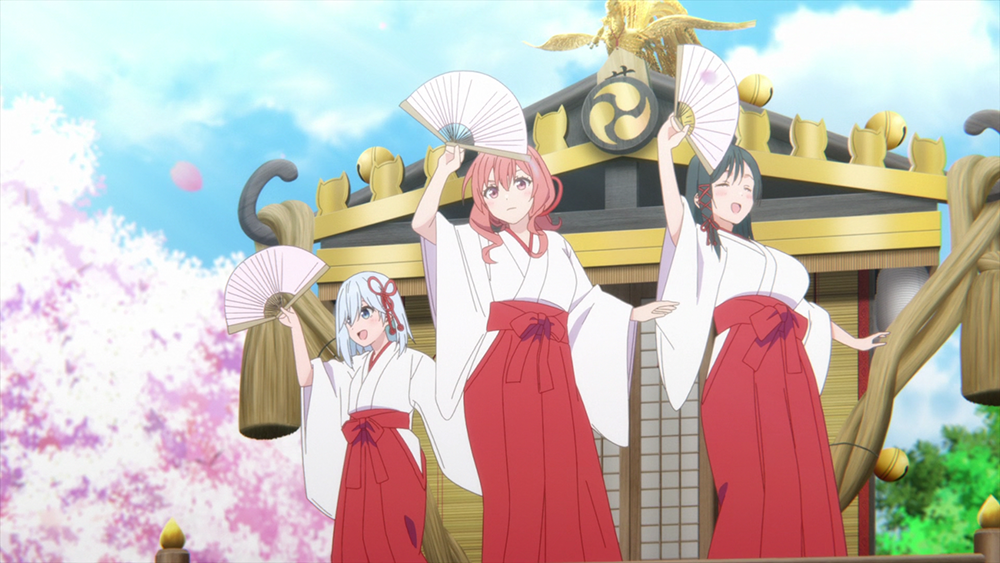 바로, 우리가 일본 축제 영상이나 사진을 찾아 본다면 쉽게 볼 수 있는 가마다. <아마가미 씨네 인연 맺기 5화>에서 우류는 상점가 사람들과 힘을 합쳐서 예대제를 주민들에게 적극적으로 홍보하기 위해서 신사 가마에 아마가미 무녀 세 자매를 태워서 적극적인 홍보를 펼쳤는데, 당연히 이건 관심을 끌 수밖에 없었다.
