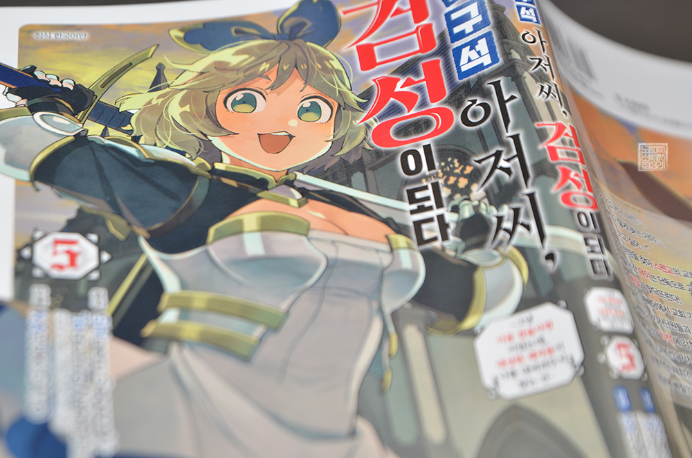 애니메이션 제작이 결정되어 있는 라이트 노벨 원작 만화 <촌구석 아저씨 검성이 되다> 시리즈 5권이 지난 8월을 맞아 한국에 정식 발매되었다. 만화 5권의 표지를 본다면 쿠르니의 모습이 귀엽게 잘 그려져 있는데, 아쉽게도 표지를 차지했다고 해서 그녀가 활약하는 모습이 5권에서 그려지지는 않았다.