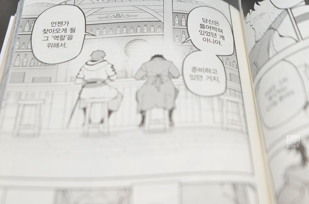 앞으로 이들이 활약하는 모습을 볼 수 있다고 생각하면 다음 이야기가 더 궁금해진다. 이미 만화 <촌구석 아저씨 검성이 되다 5권>을 읽은 이후 4권을 읽었기 때문에 조금 아쉬운 점도 있었지만, 이야기를 즐기는 데에는 문제가 없었다. 그리고 4권의 부록 느낌으로 읽어볼 수 있는 땅거미와 뮤이 두 사람의 이야기도 씁쓸함이 있었다.