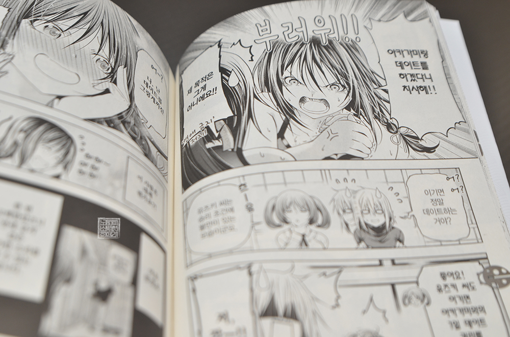 오랜만에 발매된 만화 <템플 11권>은 표지에서 볼 수 있는 카구라와 미아 두 사람의 이야기로 막을 올린다. 카구라가 아카가미에게 전한 고백을 계기로 다시 한번 여자 모임이 열리게 되고, 카구라를 추궁하는 유즈키와 모두의 모습은 아주 즐거운 분위기로 그려졌다. 누군가를 좋아하는 사람들의 선한 경쟁은 이렇게 즐겁다고 할까?