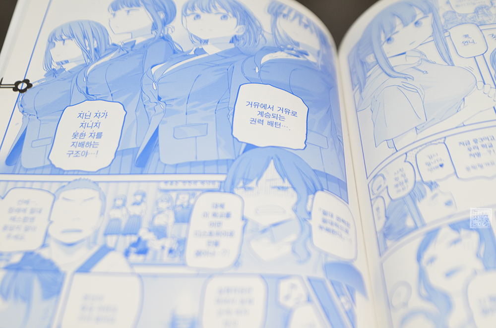 아무튼, 그런 망상을 하기보다 그저 만화 <월요일의 타와와>는 만화일 뿐이라는 것을 명심하면서 읽도록 하자. 이번 9권에서 읽어볼 수 있었던 지닌 자가 지니지 못한 자를 지배하는 구조부터 시작해서 마지막에 앞머리 짱이 치어리더 짱과 만나 어떤 이야기를 나누는 장면은 크게 웃을 수 있었다. 와…, 보너스가 제대로였다.