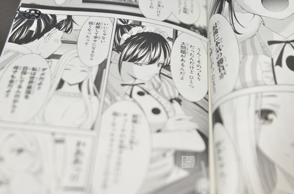 하지만 만화 <여신의 카페테라스 17권>에서 읽어볼 수 있는 이야기는 이 의상이 어울리는 여름을 무대로 하지 않는다. 이야기의 시작은 지난 16권부터 이어지는 아미의 언니 에리와 타쿠미 두 사람의 결혼 이야기다. 에리와 타쿠미 두 사람이 결혼이 완벽하게 성사되면서 앞으로도 에리는 행복해질 것을 잘 보여주었다.