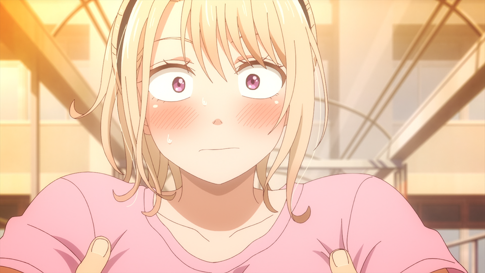 러브 코미디 장르 작품에서 가장 중요한 문화제 이벤트를 빠르게 맞이한 애니메이션 <쿠로이와 메다카에게 내 귀여움이 통하지 않아 4화>는 모나와 메다카 두 사람이 사랑의 다리로 불리는 곳에 도착한 장면으로 막을 올린다. 모나는 혹시 다른 사람들이 하루노처럼 오해하지 않을까 초조해하다 가게 홍보를 변명으로 도망친다.