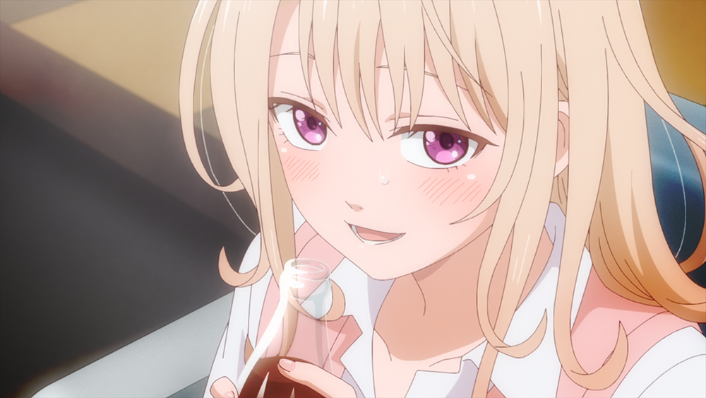 여기서 메다카는 넘어진 척을 하는 모나를 일으켜 세우기 위해서 그녀의 손을 잡는 게 아니라 그녀의 겨드랑이 사이로 손을 넣어서 모나를 일으켜 세워준다. 메다카의 생각지 못한 행동에 오히려 심장이 미친 듯이 뛴 건 모나였다. 모나가 얼굴을 붉히면서 혼자 어쩔 줄 몰라하는 모습은 만화에서 보았던 것 이상으로 잘 그려졌다.