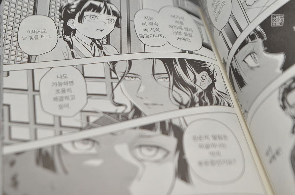 2025년 1분기를 맞아 애니메이션 2기가 방영 중인 만화 <약사의 혼잣말> 시리즈의 14권이 한국에 정식 발매되었다. 만화 <약사의 혼잣말>은 <약사의 혼잣말 마오마오의 후궁 수수께끼 풀이수첩>과 함께 국내에서도 두 종류의 만화가 발매되고 있는데, 이 두 만화는 만화를 담당한 작가가 다를 뿐 똑같은 내용을 그리고 있다.