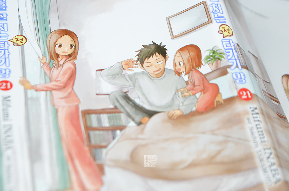 사는 게 힘이 들 때마다 읽으면 그래도 작은 행복에 웃을 수 있는 만화 <장난을 잘 치는 전 타카기 양 21권>이 오는 2월을 맞아 한국에 정식 발매되었다. 만화 <장난을 잘 치는 전 타카기 양 21권>의 표지는 아침을 맞아 타카기와 치이 두 사람이 니시카타를 깨우는 모습이 다정한 분위기로 잘 그려져 있었다.
