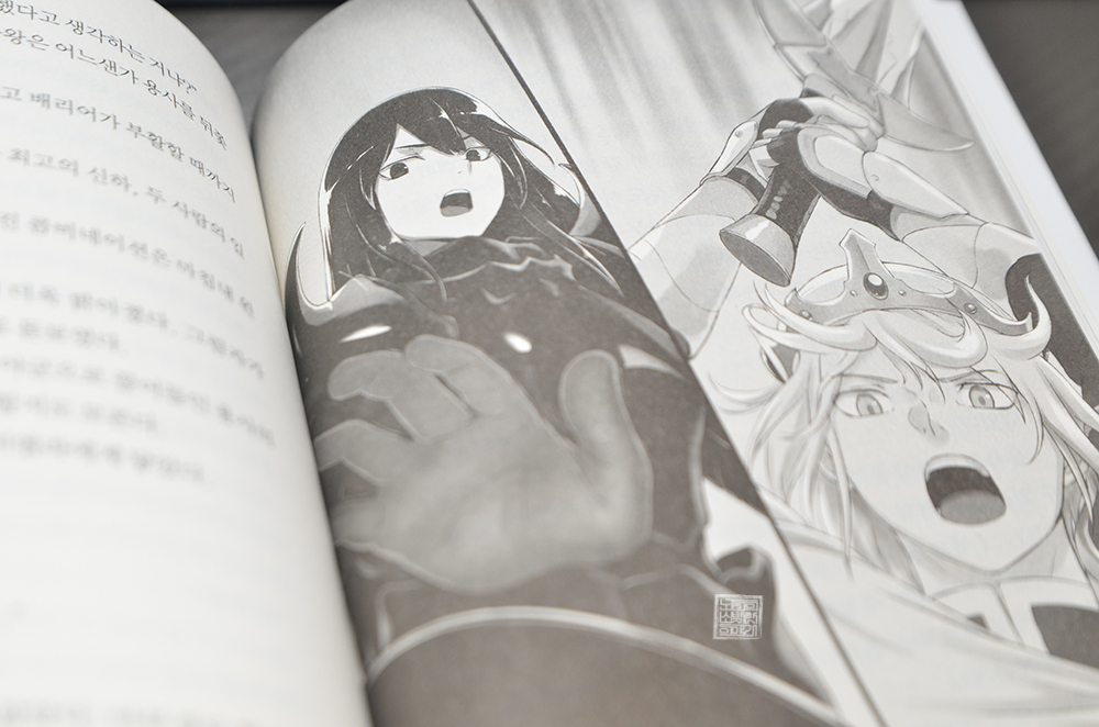 덕분에 <악역 영애 레벨99 6권>은 좌반신 유미엘라가 사후의 세계인 노을의 나라에서 보내는 이야기와 우반신 유미엘라가 현실 세계에서 보내는 이야기로 나누어졌다. 이렇게 좌반신과 우반신의 의식이 나누어진 것도 우스운 일이었지만, 어찌 보면 우리 오타쿠가 어릴 때 품었던 그 마음이자 상상력을 자극했다고 생각한다.