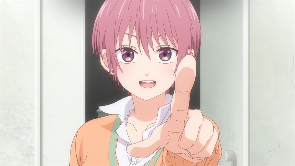 그리고 애니메이션 <쿠로이와 메다카에게 내 귀여움이 통하지 않아 8화>는 드디어 오사카에서 올라온 친구 난바와 만난 모나의 모습을 그렸다. 난바는 모나와 달리 내숭을 떠는 인물이 아니라 보이시한 스타일 그대로 대단히 외향적인 인물이었다. 그야말로 E 성향 100%일 것 같은 그녀가 보여주는 모습도 확실히 미소녀라는 느낌이다.