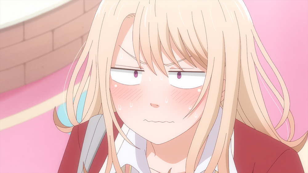 그리고 애니메이션 <쿠로이와 메다카에게 내 귀여움이 통하지 않아 11화>는 어떻게 보면 러브 코미디의 왕도라고 말할 수 있는 이벤트가 그려지기도 했다. 바로, 모나가 메다카에 대한 자신의 마음과 상황을 고민하다가 혼자서 무리에서 떨어진 것도, 하필이면 스마트폰이 고장 난 것도, 양아치들에게 헌팅을 당한 것도 그렇다.