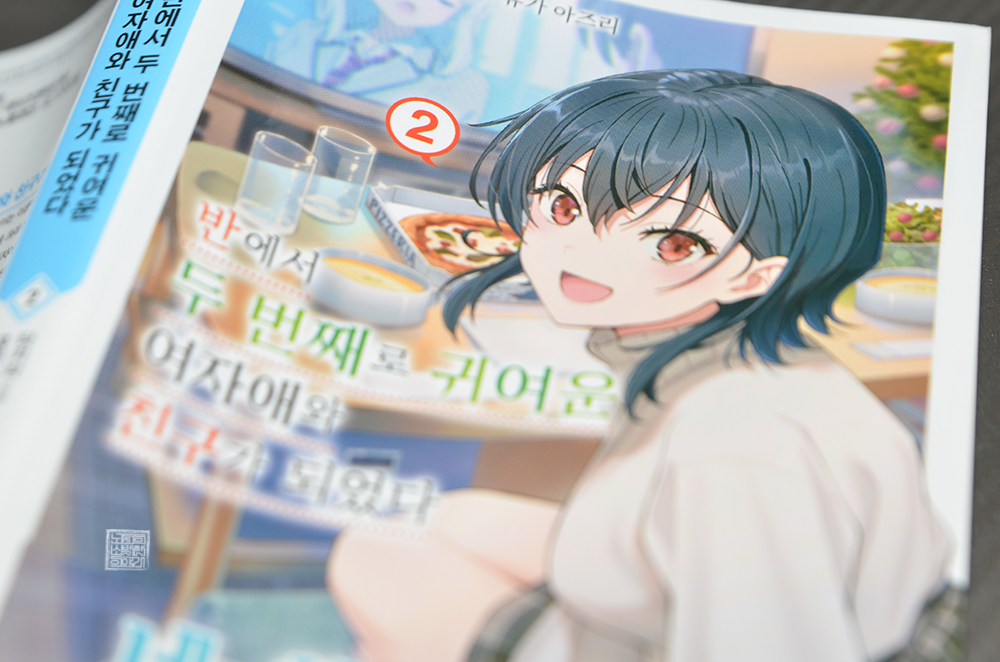 라이트 노벨 1권을 재미있게 읽은 이후 2권의 정식 발매를 기다리고 있던 <반에서 두 번째로 귀여운 여자애와 친구가 되었다 2권>이 오는 4월 신작 라이트 노벨로 드디어 정식 발매되었다. 2권의 표지도 여전히 너무나 귀여운 우미의 모습이 그려져 있는데, 우미의 일러가 그려진 배경을 본다면 마치 파티를 하는 듯한 모습이었다.