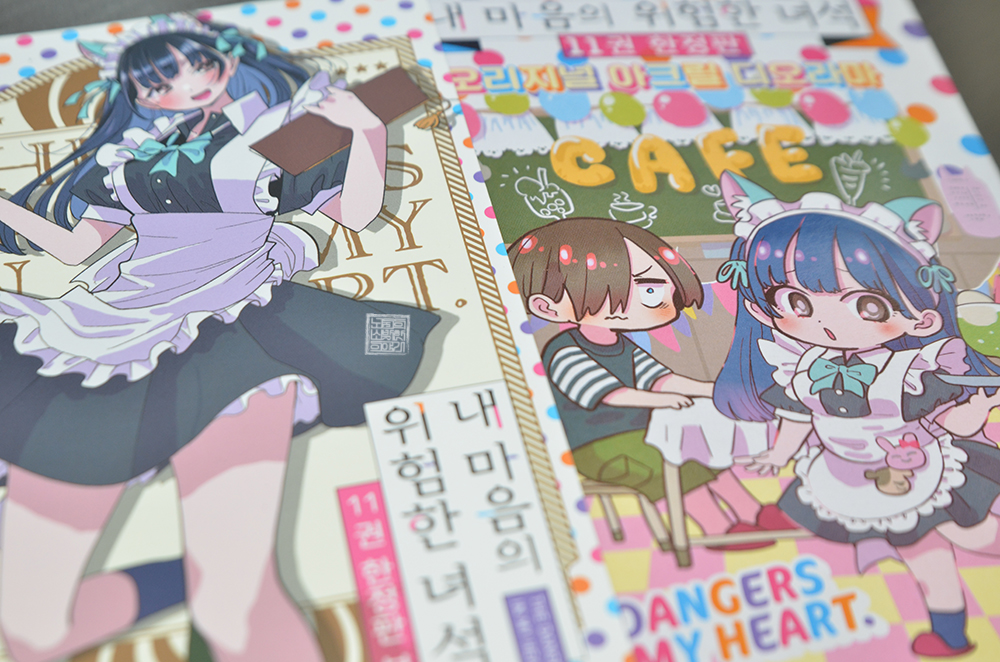 매번 재미있게 읽는 러브 코미디 만화 <내 마음의 위험한 녀석 11권>이 한정판으로 오는 5월을 맞아 한국에 정식 발매되었다. 만화 11권의 한정판 부록은 오리지널 아크릴 디오라마와 포토 카드 몇 장으로, 여기서 볼 수 있는 오리지널 아크릴 디오라마는 일본에서 만화 <내 마음의 위험한 녀석 11권>이 특장판으로 발매되었을 때의 부록이었다.