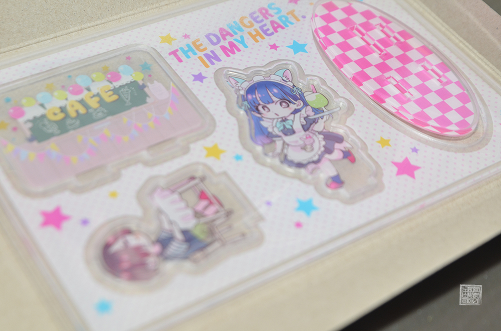 아크릴 스탠드와 아크릴 디오라마의 차이점은 배경의 유무다. 배경 없이 캐릭터의 일러스트만 있는 것을 가리켜서 아크릴 스탠드라고 말하고, 캐릭터와 함께 주변 배경이 함께 잇는 것을 아크릴 디오라마라고 말한다. 둘 다 매력적이 굿즈이기는 해도… 귀여운 걸 좋아하는 사람들에게는 아크릴 디오라마가 더욱 매력적일지도 모른다.
