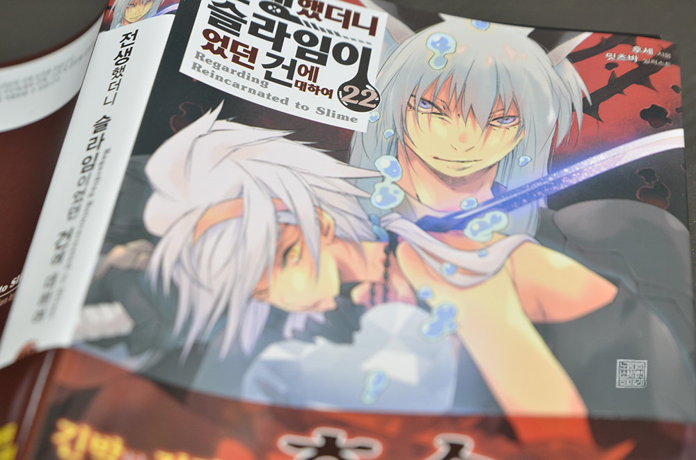 지난 2024년 1월을 맞아 라이트 노벨 21권이 발매된 이후 정확히 1년 하고도 4개월 만에 드디어 라이트 노벨 <전생했더니 슬라임이었던 건에 대하여 22권>이 한국에 정식 발매되었다. 지난 21권과 마찬가지로 여전히 리무루가 부재한 상황 속에서 한 치 앞을 내다볼 수 없는 싸움이 이어지고 있는 22권의 핵심은 바로 표지에 있다.