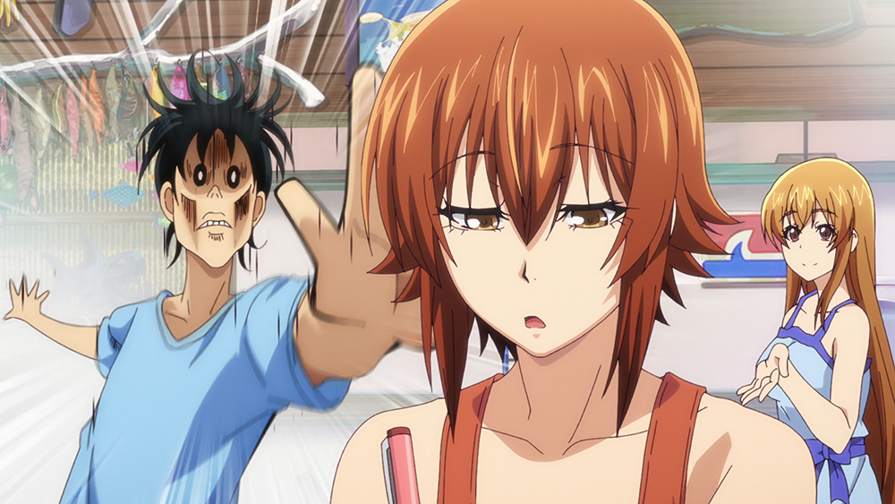 애니메이션 <그랑블루 2기 1화>는 아즈사와 나나카 두 사람의 사진을 노리는 이오리와 치사가 티격태격하다가 두 사람이 모두 영어 사전에 머리를 부딪히고 기절하는 사태가 벌어졌다. 익일 그 모습을 나나카에게 목격당한 이후 이오리가 받는 추궁은 역시 <그랑블루>라고 말할 수 있었는데, 여기에 깜짝 손님이 등장했다.