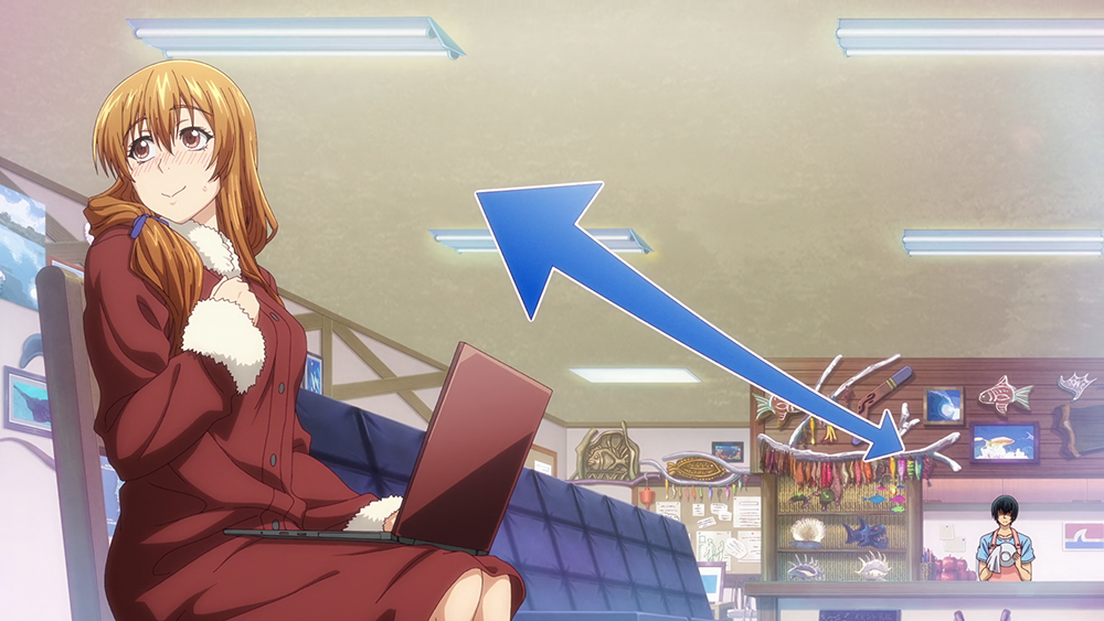 그런 점이 또 나나카가 가진 매력이라고 말할 수 있는데, 애니메이션 <그랑블루 2기 3화>에서는 이오리가 나나카와 사이에서 생긴 오해를 풀기 위해서 아즈사의 도움을 받는 모습을 볼 수 있었다. 아즈사도 역시 여기서 볼 수 있는 몇 안 되는 매력적인 인물이라고 생각하지만, 그녀는 나나카와 친구들 사이에서 관계가 이미 정리되어 있었다.