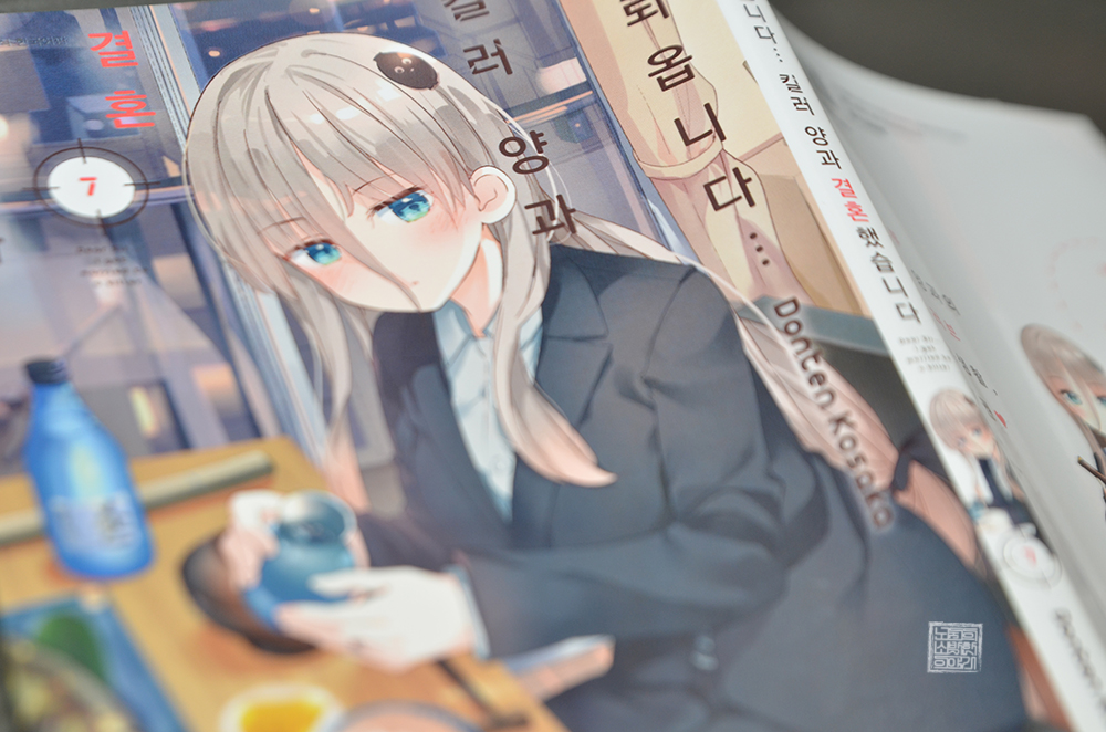 오랜만에 만화 <아뢰옵니다 킬러 양과 결혼했습니다 7권>이 한국에 정식 발매되었다. 지난 6권이 2024년 7월에 발매된 이후 약 1년 하고도 3개월 만에 2025년 10월을 맞아 7권이 발매된 셈이다. 7권의 표지에서 볼 수 있는 세츠나도 귀엽지만, 7권에 수록되어 있는 여러 컬러 일러스트도 귀엽게 그려져 있었다.