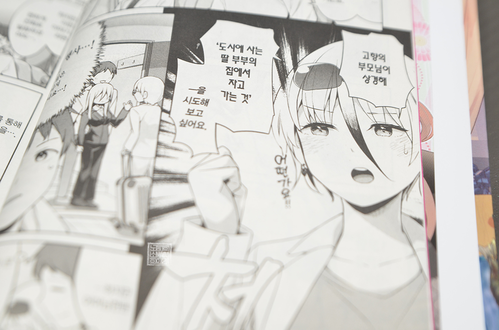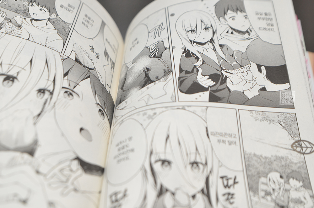 그래도 열심히 노력한 덕분에 약 5분 동안 통화를 하는 데에 성공했을 뿐만 아니라 닮은 꼴인 두 사람이 서로를 챙기는 모습이 사랑스럽게 잘 그려져 있었다. 자세한 건 여러분이 직접 만화 <아뢰옵니다 킬러 양과 결혼했습니다 7권>을 읽어 보자. 이 두 사람의 이야기만으로도 이 작품의 분위기를 알 수가 있었다.