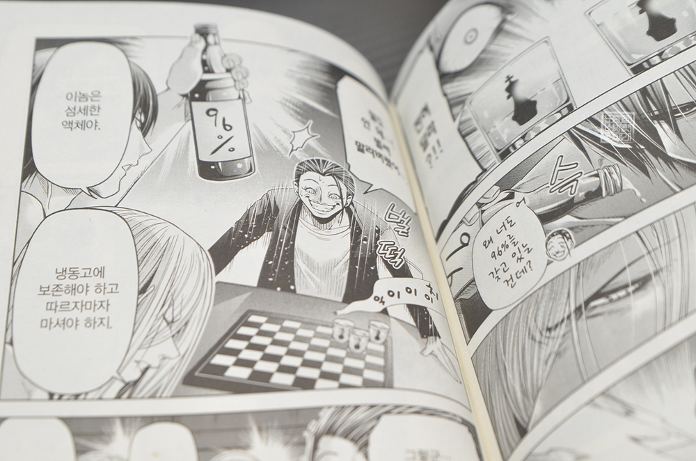 그 이외에도 만화 <그랑블루 25권>에서는 여러 재미있는 이야기가 그려져 있으니 자세한 건 책을 읽어보도록 하자. 개인적으로 노지마가 우연히 알고리즘을 타서 SNS 수익화를 앞두고 벌어지는 해프닝과 함께 바로 위에서 첨부한 사진에서 볼 수 있는 96%의 술을 마시며 체스를 두는 사이비 종교가 얽힌 해프닝이 대박이었다.